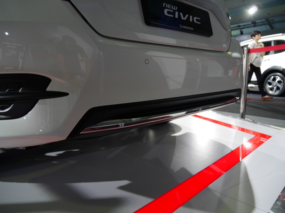 Bampar belakang diberikan kemasan baharu pada lid bawah, manakala spoiler kini lebih besar. Honda juga berbesar hati memberikan rim aloi 18-inci hitam, tetapi khas untuk varian 1.5 TC-P sahaja. Pihak media juga diberikan peluang istimewa untuk melihat rupa kabin Civic facelift.