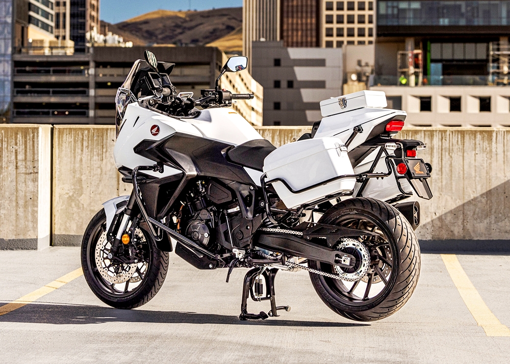 - Honda NT1100 Police menggunakan frem dan enjin silinder kembar CRF1100L Africa Twin 1,084cc SOHC sebagai asas dengan transmisi manual 6-kelajuan yang dipadankan bersama sproket 16T/40T.