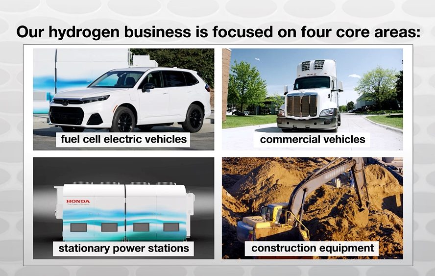 Honda juga mengenal pasti empat bidang utama dalam penggunaan awal sistem FC, iaitu FCEV, kenderaan komersial FC, stesen kuasa dan jentera pembinaan.
