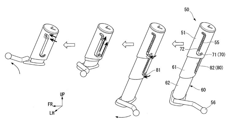 Rekacipta baharu Honda itu memiliki ciri aktif dan nyah aktif menggunakan mekanisme teleskopik paip tubular dengan rekaan multilapisan. Rekacipta itu mirip mekanikal teleskopik daripada batang payung, atau batang monopod, tetapi dengan sistem pengunci berbeza.