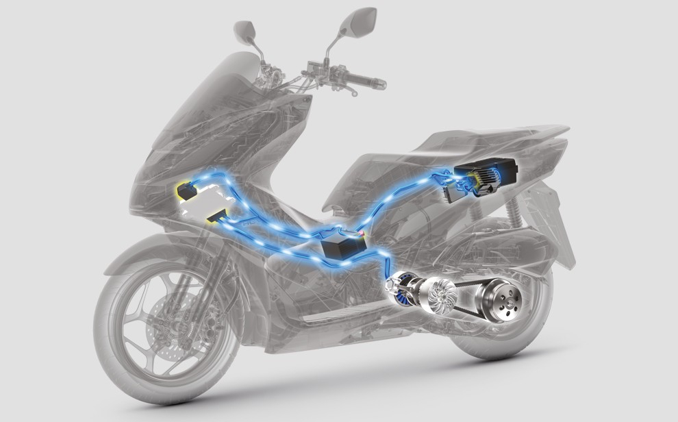 - Juga ada varian hibrid, PCX 160 e:HEV dalam warna putih-biru, dijana enjin konvensional 157cc yang dipadukan sistem elektrik dikuasakan bateri lithium-ion.