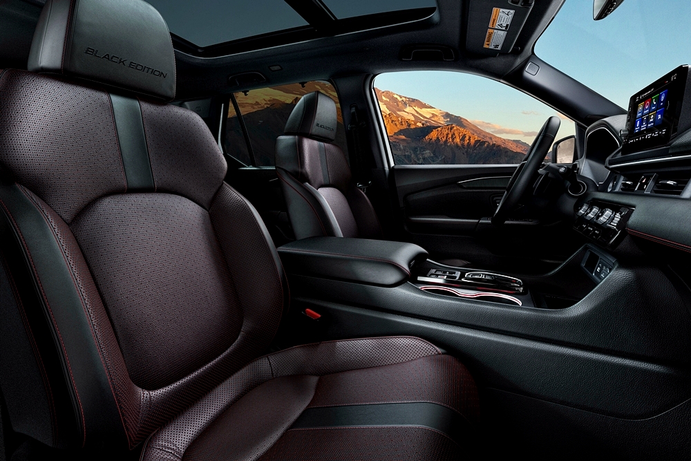 Bahagian dalaman diserikan kerusi kulit dengan rongga merah yang mendominasi dan satu-satunya varian Pilot dilengkapi ciri sebegini selain logo Black Edition pada penyandar kepala dan alas kaki.