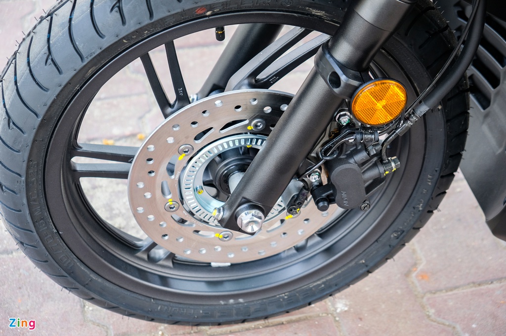Perincian logam turut disalut kemasan hitam berkilat, termasuk kontur badan, dan fasia depan. Malah absorber, perumah enjin dan pelapik ekzos juga dihitamkan sepenuhnya. Begitu juga pelana, hitam dengan kontras sulaman benang merah. Di bawah pelana tersimpan tangki minyak berkapasiti 9 liter dan ruang simpanan 19 liter.
