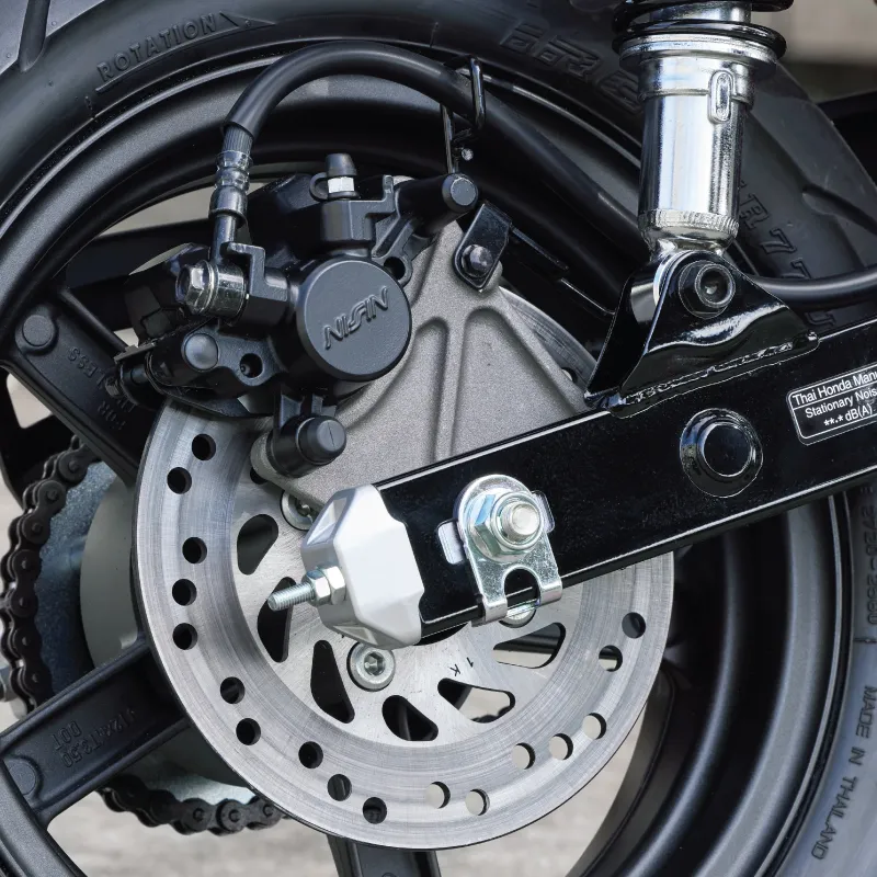 - Bahagian roda menggunaka tayar 12 inci saiz 120/70 (depan), dan 130/70 (belakang).