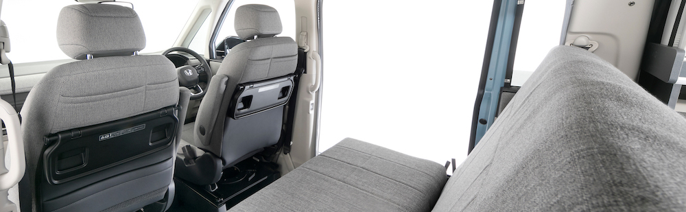 Barisan tempat duduk pula boleh direbahkan untuk membentuk katil kedua. Ini membolehkan Honda Step WGN Pop Joy ini menampung tempat tidur untuk empat individu dewasa, atau dua dewasa dan dua kanak-kanak.
