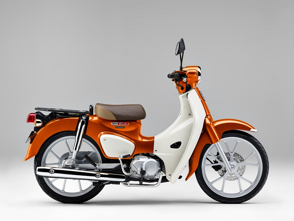 MODEL kapcai ikonik Honda Super Cub 110 (2024) menerima warna baharu terang untuk pasaran Jepun, Flare Orange Metallic (jingga) yang biasa jadi pilihan pemilik untuk membaik pulih Honda Cub mereka.