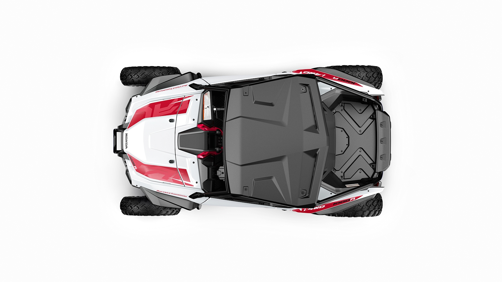 Berikut ciri 1000R dan 1000X yang dipacu enjin 999cc Unicam® Parallel Twin bersama transmisi dual-klac (DCT) 6-kelajuan dengan subtransmisi tinggi/rendah. Turut diperincikan spesifikasi model 4-kerusi 1000X-4 dan 1000X-4 FOX® Live Valve.