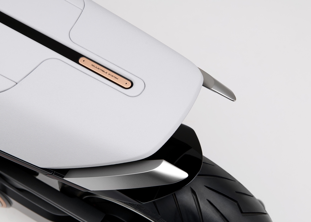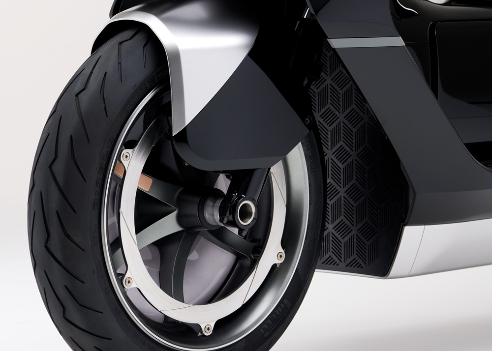 Tidak seperti kereta yang mampu memuatkan bateri bersaiz besar dan berat, ruang motosikal pula terhad. Ini berbeza EV Fun Concept gaya naked, EV Urban Concept (foto atas) yang tampil sebagai skuter mirip BMW CE 04.