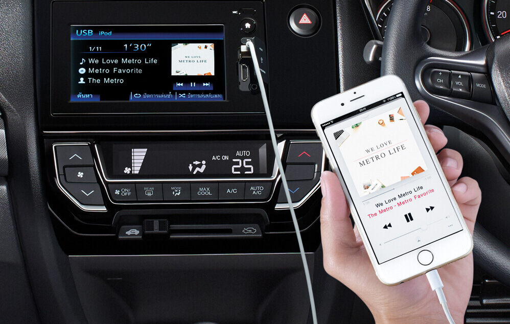 - Sistem audio dengan skrin sentuh 6.1 inci – menyokong sambungan HDMI untuk audio dan vide0