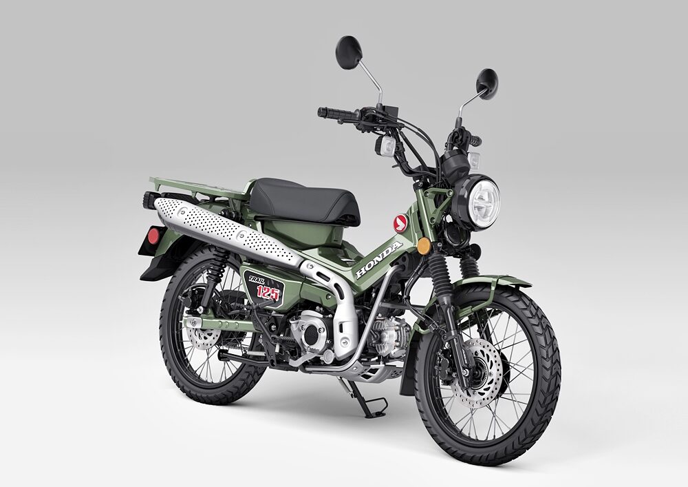 Selain perubahan mekanikal, Honda Trail125 (2023) ditawarkan dalam warna baharu Pearl Organic Green (hijau). Kapcai off-road ini dijual pada harga AS$3,999 (RM17,740).