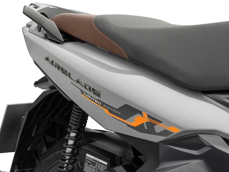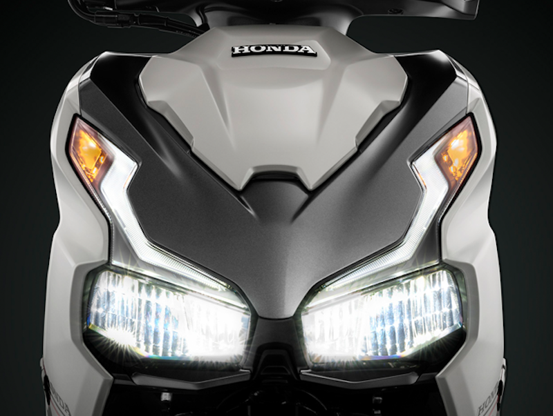 - Panel depan Air Blade 150 memaparkan corak seakan huruf X dengan pengenaan kelabu gelap dan kepala skuter mengikut warna badan.