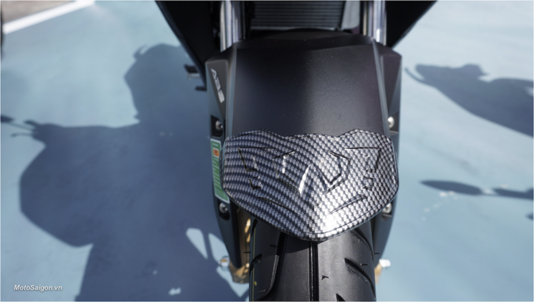 Aksesori tambahan itu termasuk komponen plastik dengan aksen gentian karbon, penutup madgad depan, mufler ekzos dan kotak simpan plastik pada panel depan motosikal.