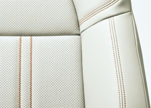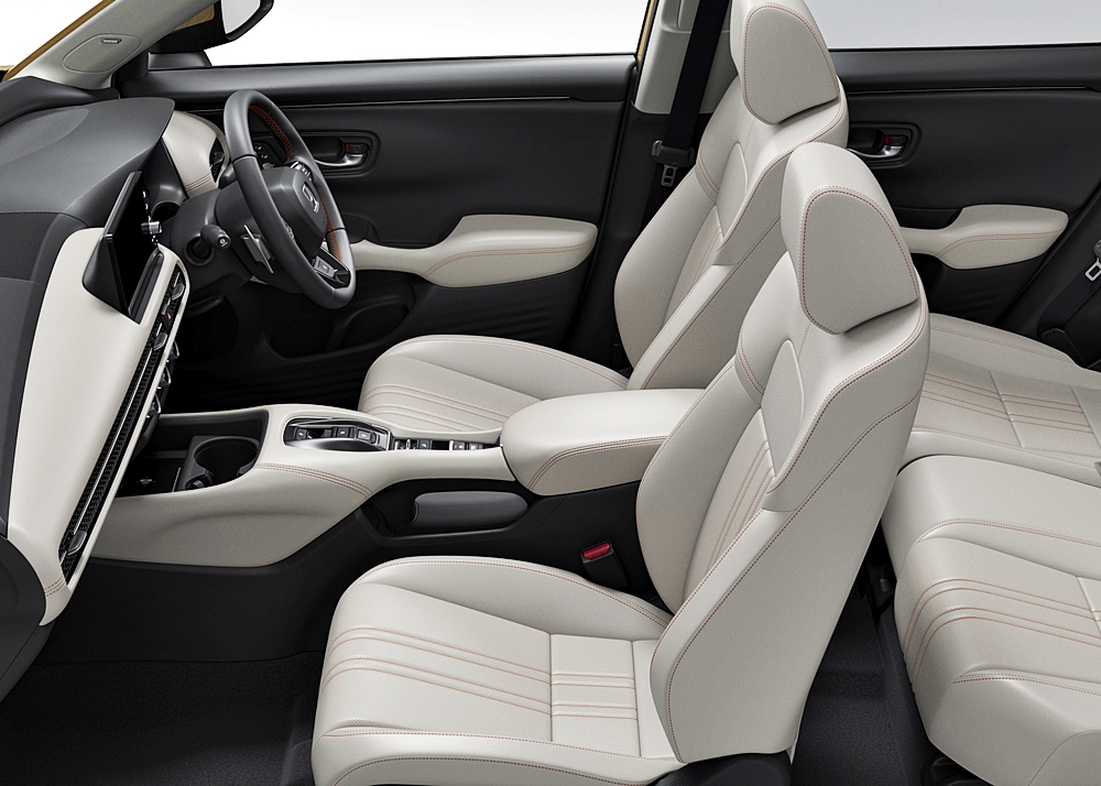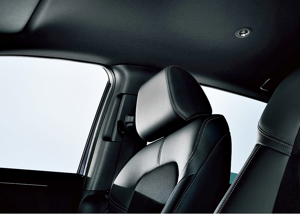 Bahagian dalaman menampilkan penggunaan warna greige yang dipadankan dengan jahitan berwarna jingga bagi mewujudkan ruang kabin yang segar dan terbuka.