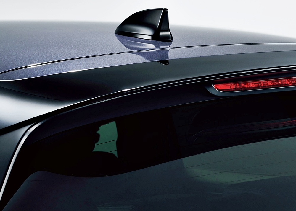 Identiti sporty dan premium model ini diperkukuhkan lagi dengan penggunaan komponen eksklusif berwarna Crystal Black Pearl pada garnish bampar hadapan, pelindung bucu bampar, garnish sisi, pelindung gerbang roda, antena sirip yu, cermin sisi dan pemegang pintu luar.