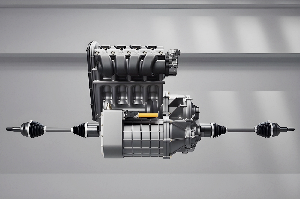 - Pacuan Semua Roda (AWD): Transmisi dan aci pacu (drive shaft) untuk operasi AWD dalam kedua-dua mod EV dan hibrid selari (parallel).