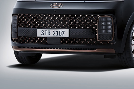 - Imej paling dominan ialah bahagian depan Staria gaya futuristik. MPV itu hadir dengan jalur panjang lampu siang dan lampu kedudukan yang merentas dari kiri ke kanan.