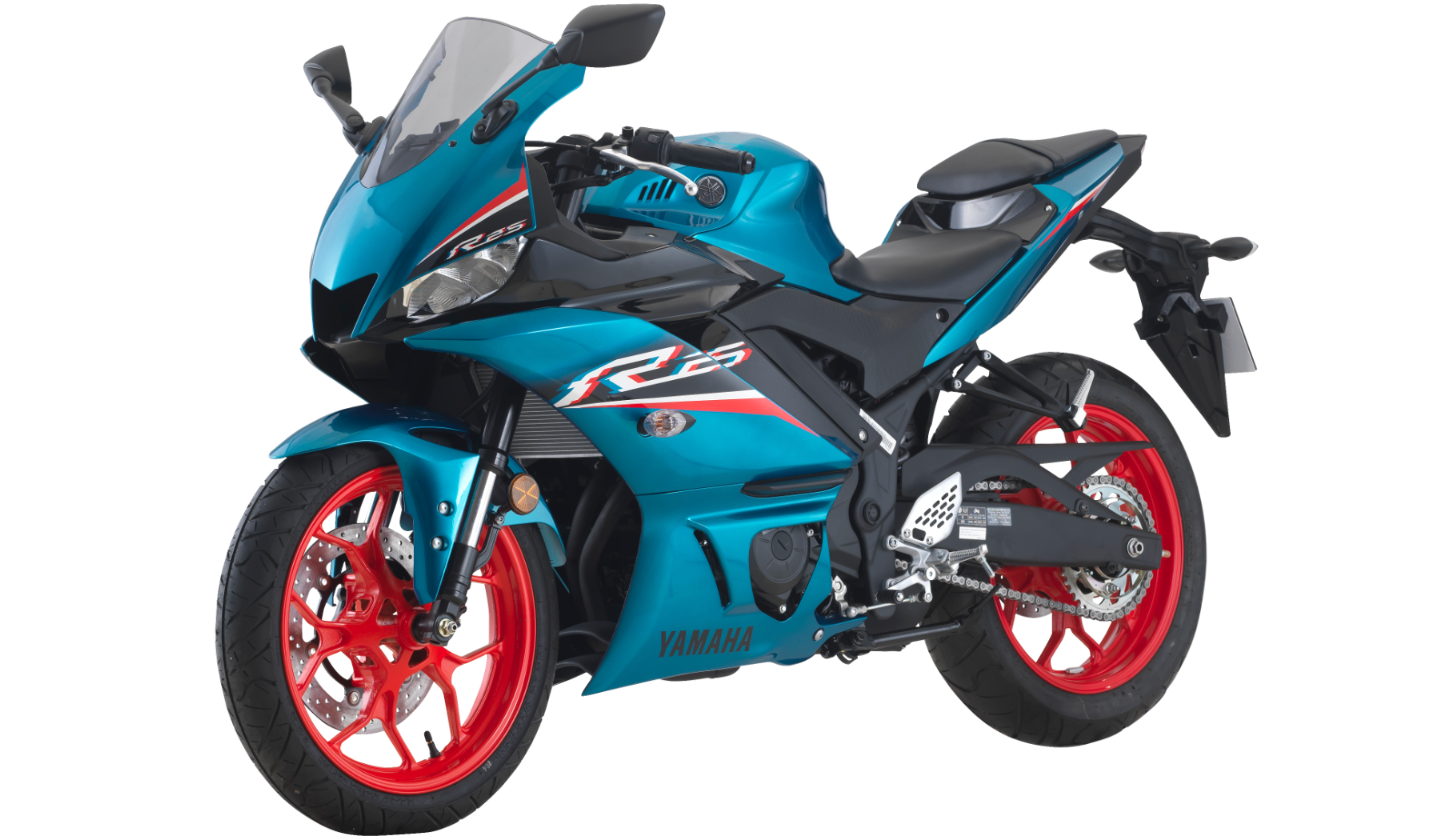 - Pilihan warna Cyan Metallic menampilkan warna badan baharu, sian dengan rekaan grafik ‘R25’ putih-merah-hitam yang lebih agresif pada fairing sisi. Skema warna ini didatangkan dengan rim aloi merah. Warna ini juga menggantikan warna Matt Silver (perak).