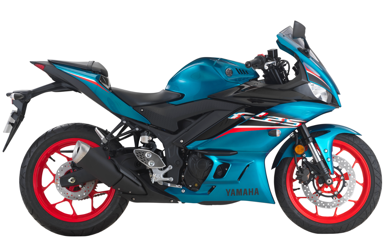 - Kombinasi warna Yamaha Blue kekal sama seperti model 2020, iaitu fairing ekor dan fender depan kelabu, termasuk rekaan grafik ‘R25’. Rim aloi berwarna biru gelap, sama seperti warna badan.
