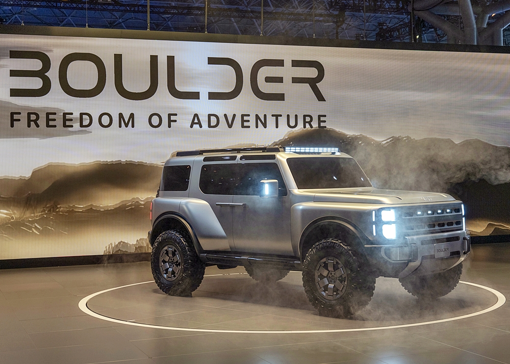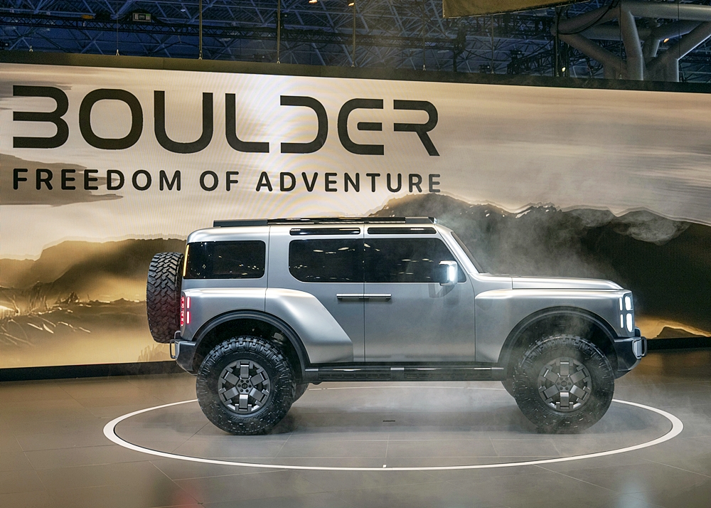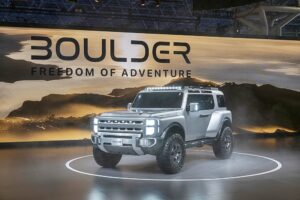 Berada di Amerika Syarikat dan berdasarkan gayaan yang dibawa, Boulder Concept seperti mahu menyaingi Ford Bronco dan Jeep Wrangler.