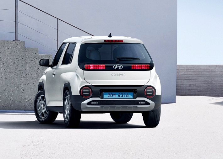 Bahagian belakang juga menerima bampar baharu dan pendakap plat pelindung supaya seragam dengan bahagian depan. Walaupun adik beradik kembar, rekaan depan dan belakang termasuk lampu Casper tidak sama dengan Inster.