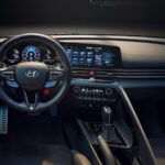 - Kabin Elantra N didominasi tona gelap dengan kerusi buket dan sistem sokongan ekstra. Ada sulaman N pada penyandar. Juga pilihan set kerusi lebih nipis dan 10mm lebih rendah dengan logo N berlampu.