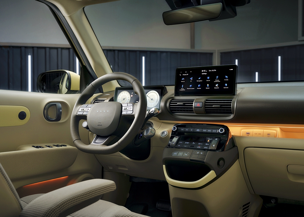 • Selain dilipat rata, kerusi belakang boleh dilipat dalam nisbah 50:50 dan boleh dilaras depan dan belakang, atau direbah supaya menyandar lebih selesa. Tema dalaman Hyundai Inster Cross meriah dengan kemasan kuning limau yang berlatar belakang fabrik kelabu.