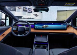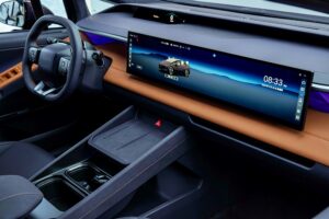 - Skrin panoramik 4K ultra nipis bersaiz 27 inci yang menyepadukan fungsi pemanduan dan infotainmen.