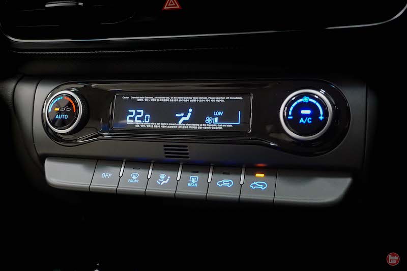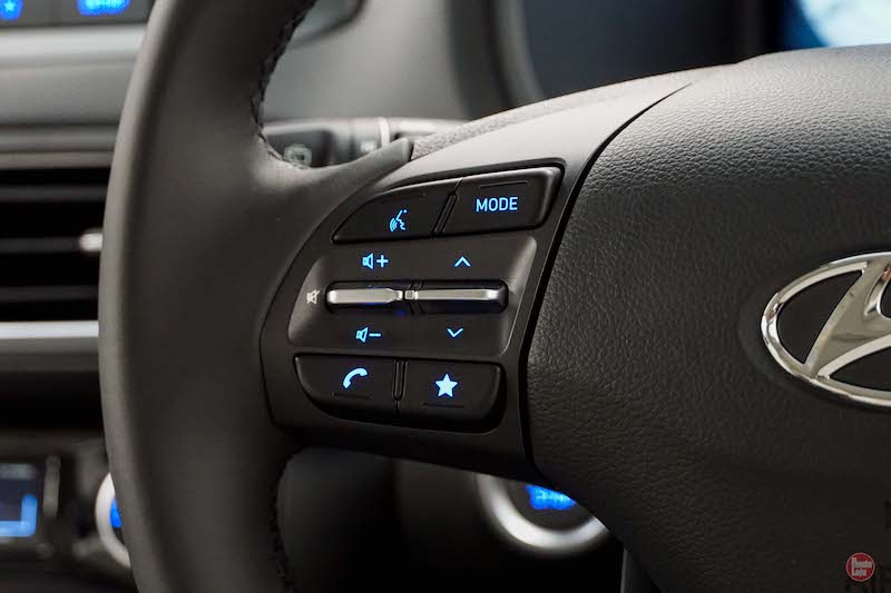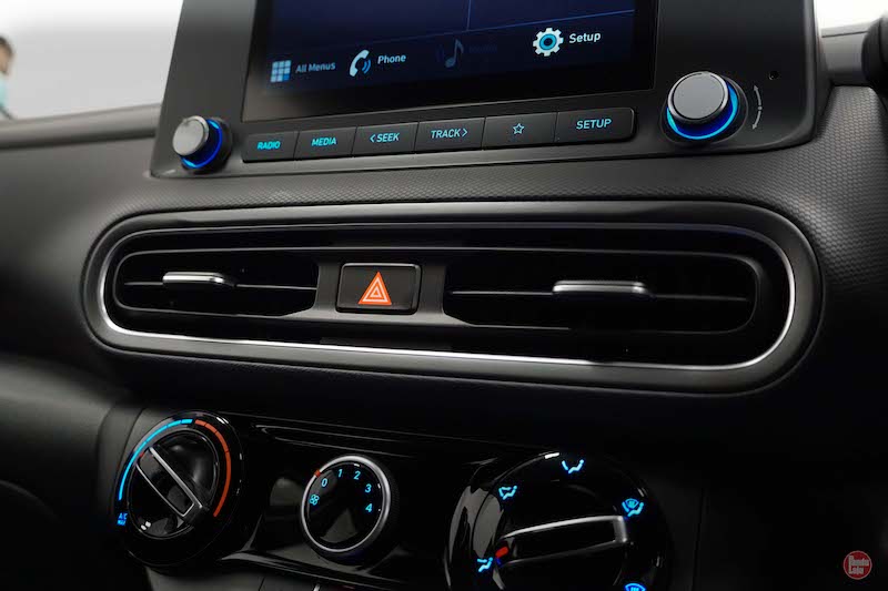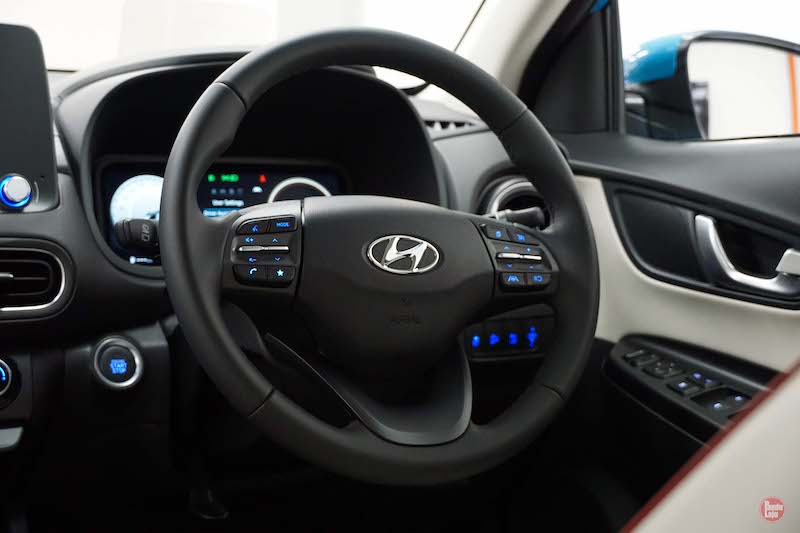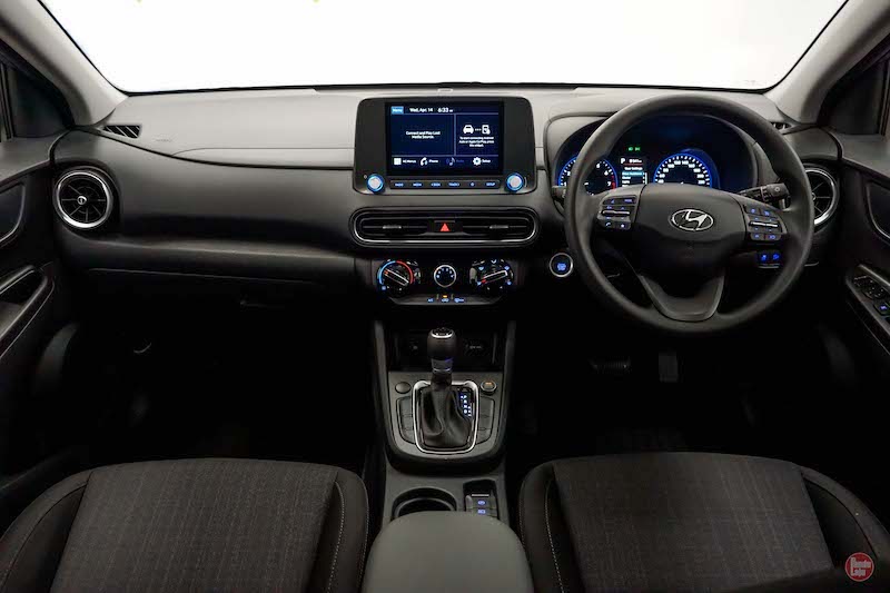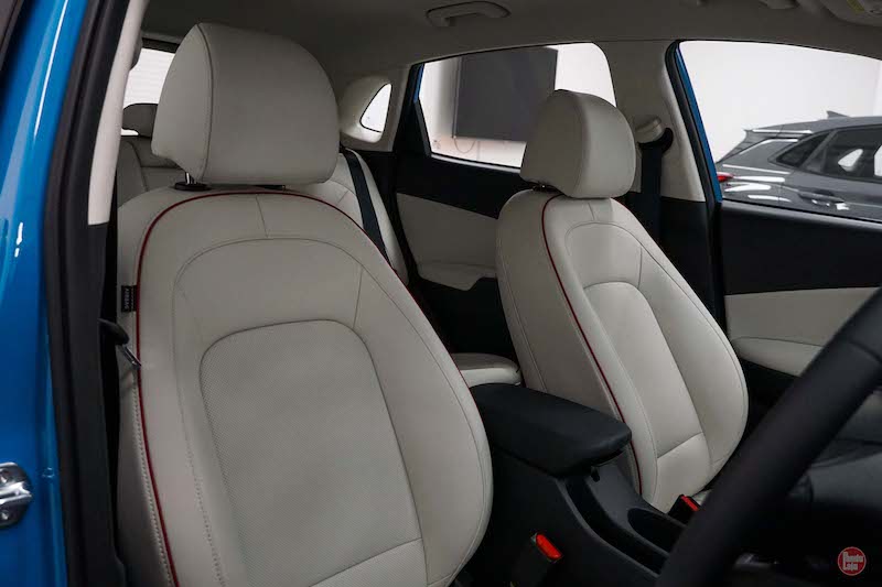 - Kona Standard ada empat warna badan: Chalk White (putih), Galactic Grey (kelabu), Surfy Blue (biru) dan Pulse Red (merah). Kemasan kabin tona gelap dengan upholsteri fabrik.