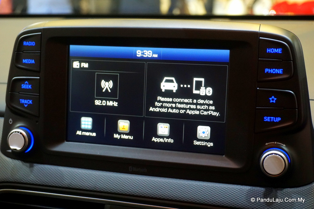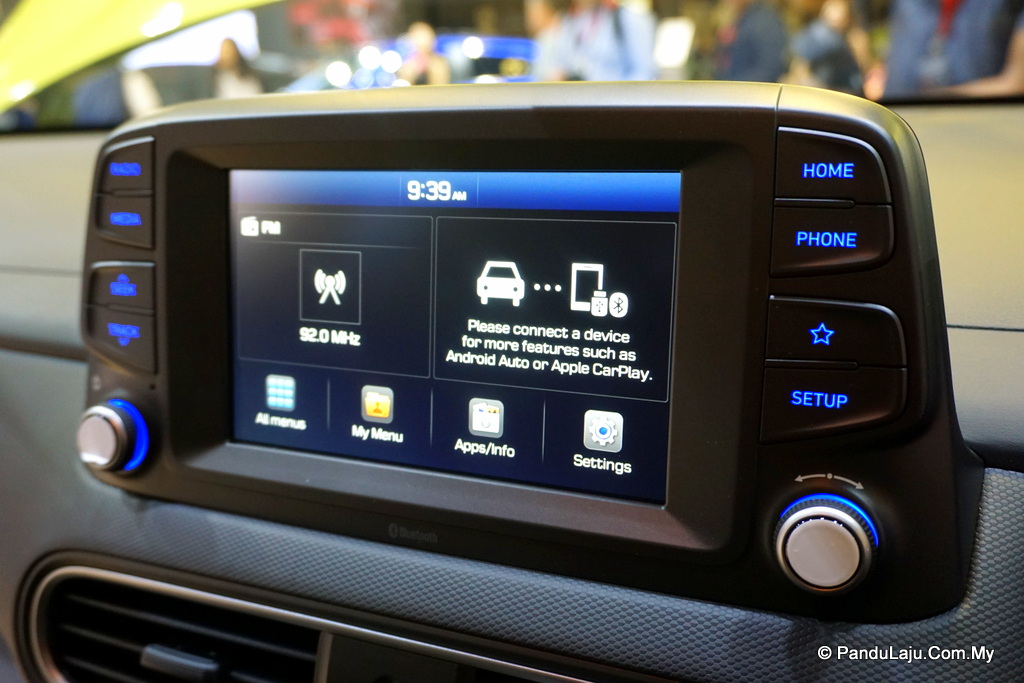 Malah, Hyundai Kona turut dilengkapi sistem infotainment terkini yang memuatkan aplikasi Android Auto dan Apple Car Play, radio definisi tinggi (HD), kamera belakang, dan telematik 4G dengan paparan skrin sentuh 5, 7 atau 8-inci.