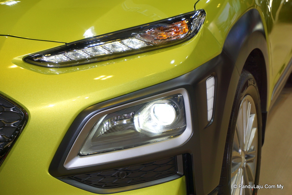 Ciri lain ditampilkan ialah unit lampu utama LED dan pelbagai pilihan rekaan rim. Menurut Hyundai, objektif rekabentuk Kona adalah gaya moden yang menjadi golongan pembeli muda sebagai sasaran.