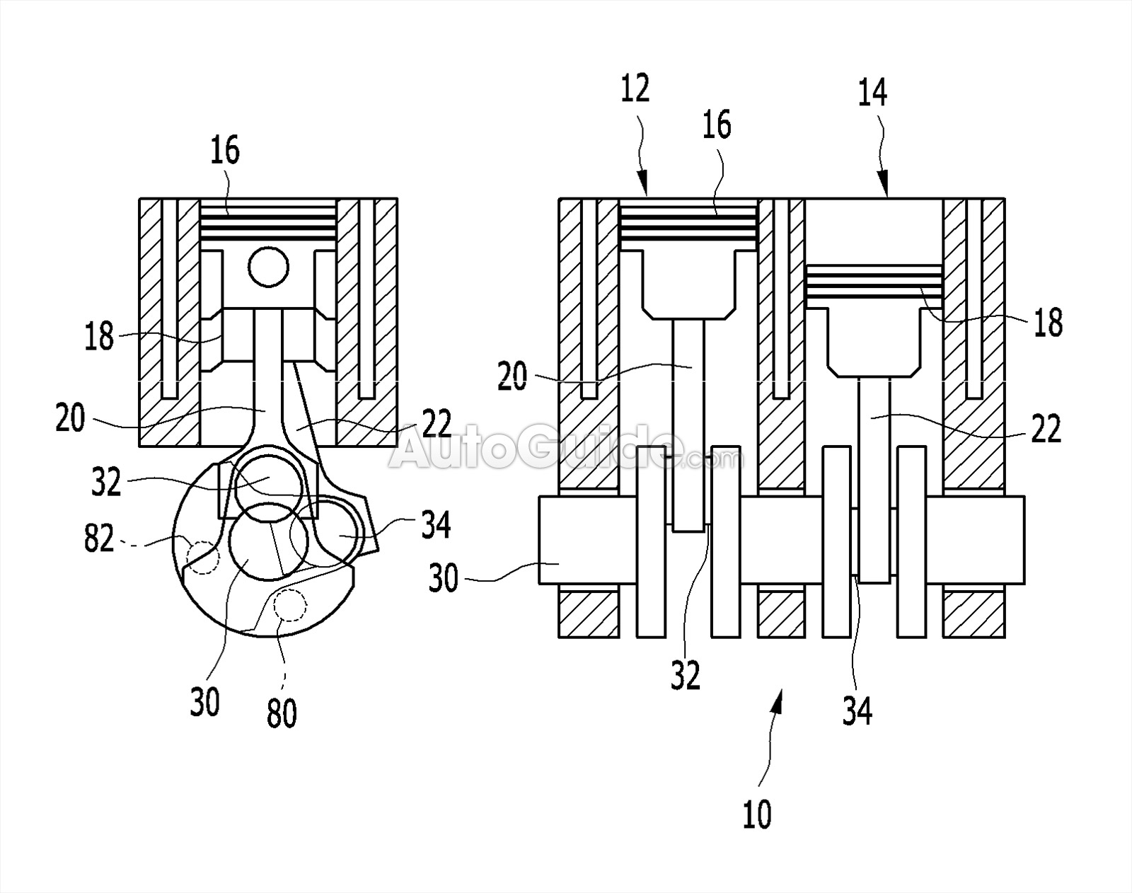 - Rekabentuk trenkuasa, terdiri daripada enjin 2-silinder termasuk piston pertama yang diatur dalam silinder pertama, dan piston kedua yang diatur dalam silinder kedua.