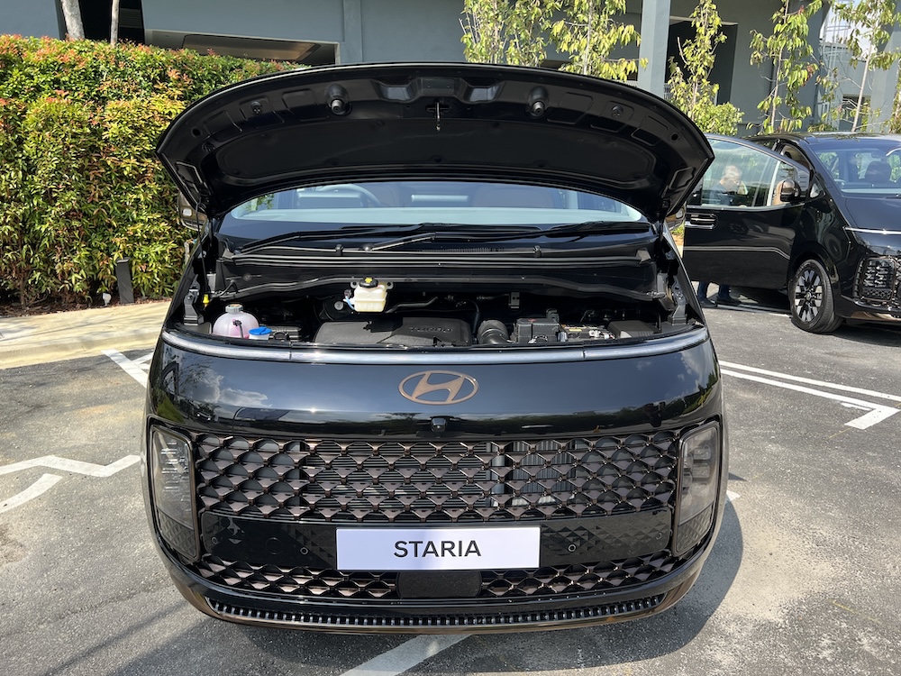Ketiga-tiga varian Staria dikuasakan enjin diesel 4-silinder sebaris 2.2L dengan pengecas turbo yang menjana kuasa maksimum 177ps @ 3,800rpm dan tork 430Nm @ 1,500-2,500rpm.