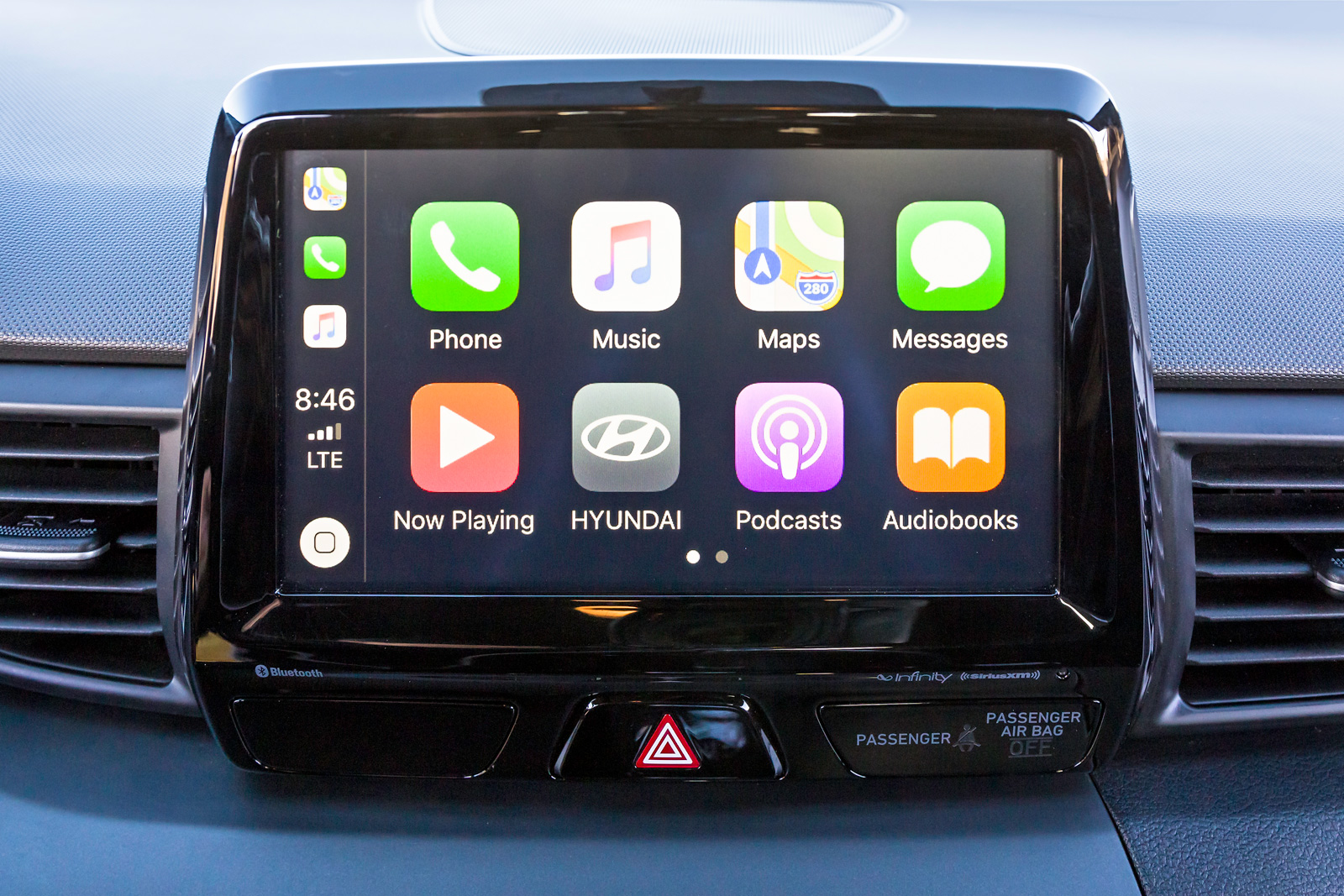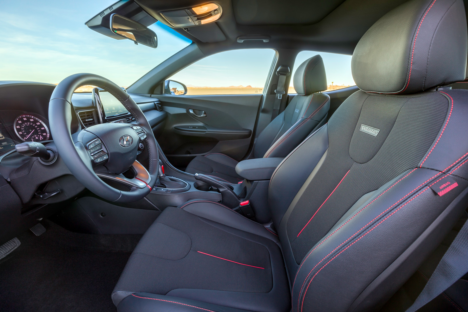 Ruang kabin menampilkan sistem infotainment premium dengan ciri Apple CarPlay dan Android Auto, termasuk radio SiriusXM, radia definisi tinggi (HD), dan konektiviti Blue-Link LTE versi terkini. Veloster memiliki skrin LCD warna 7-inci sebagai standard, manakala skrin 8-inci dengan fungsi navigasi ditawarkan sebagai opsyen. Sistem paparan dongak juga disediakan bersama sistem mengecas wayarles Qi.