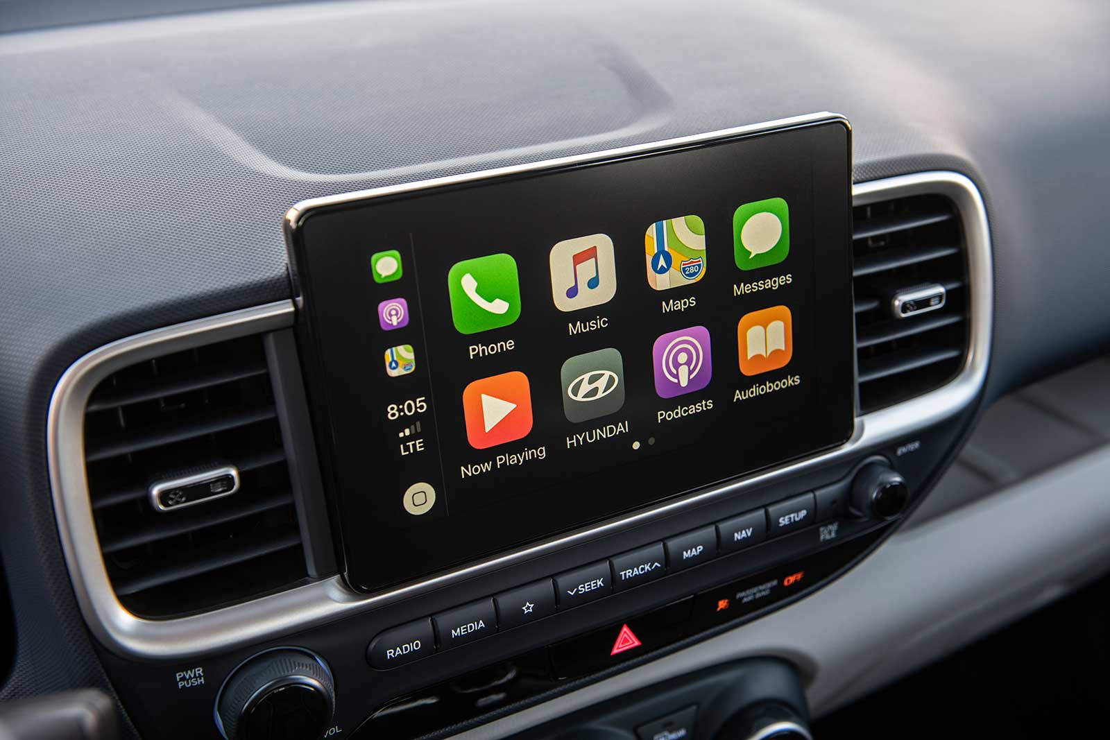 Venue (2020) didatangkan dengan sistem infotainment dan skrin sentuh 8 inci yang serasi kemas kini trafik masa nyata, Apple CarPlay, dan Android Auto. Ia juga dilengkapkan port USB pengecasan pantas, kerusi depan dan cermin sisi dengan fungsi pemanas, sistem navigasi, Bluetooth, dan ciri Amazon Alexa dan Google Assistant bersepadu, membolehkan pemandu menghidupkan kereta secara kawalan jauh menggunakan peranti rumah yang dihubungkan.