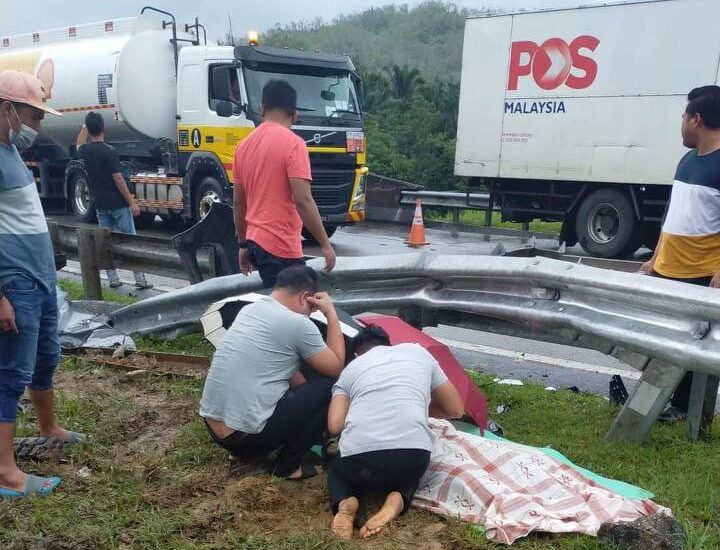 SEORANG ibu bersama anak dalam kandungan maut selepas kereta Honda Jazz dipandu suaminya terbabas akibat terlanggar lopak air di KM392.2, Lebuh Raya Pantai Timur 2 (LPT2) Ajil dekat Bukit Besi, Hulu Terengganu, Sabtu lalu.