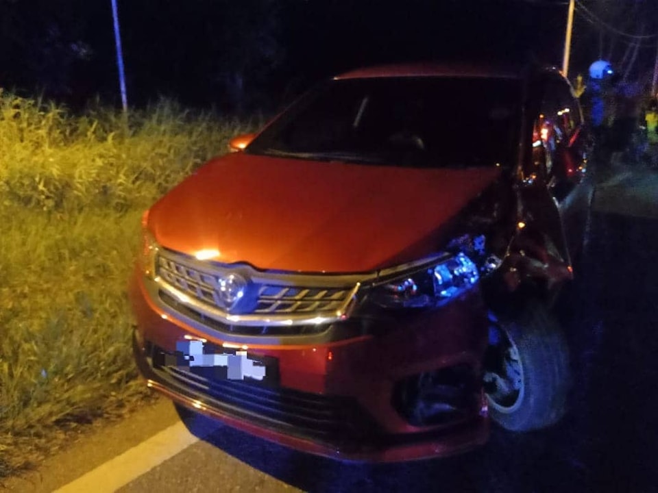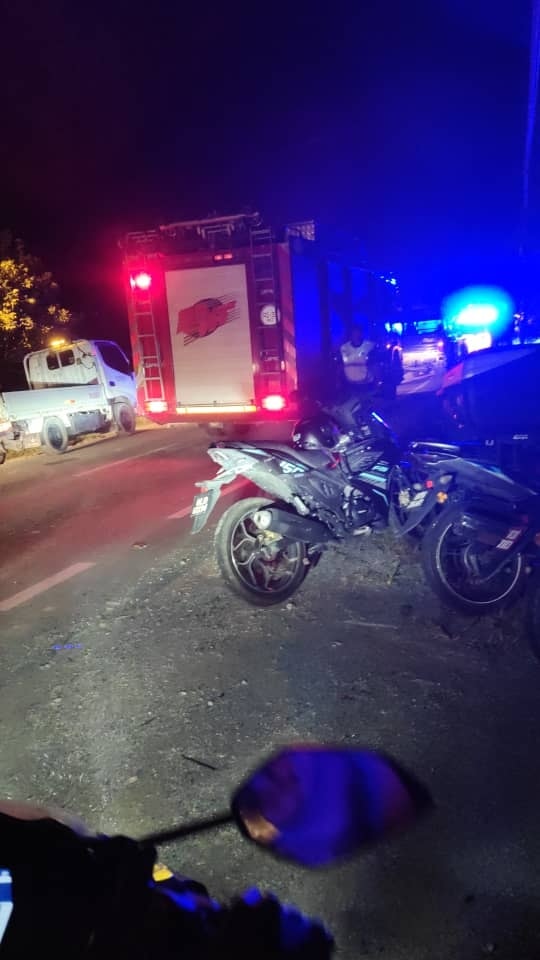 Kejadian membabitkan Proton Persona dipandu seorang lelaki yang melanggar belakang motosikal ditunggang seorang wanita berusia 32 tahun berserta tiga pembonceng, menyebabkan motosikal itu terbabas memasuki parit.”