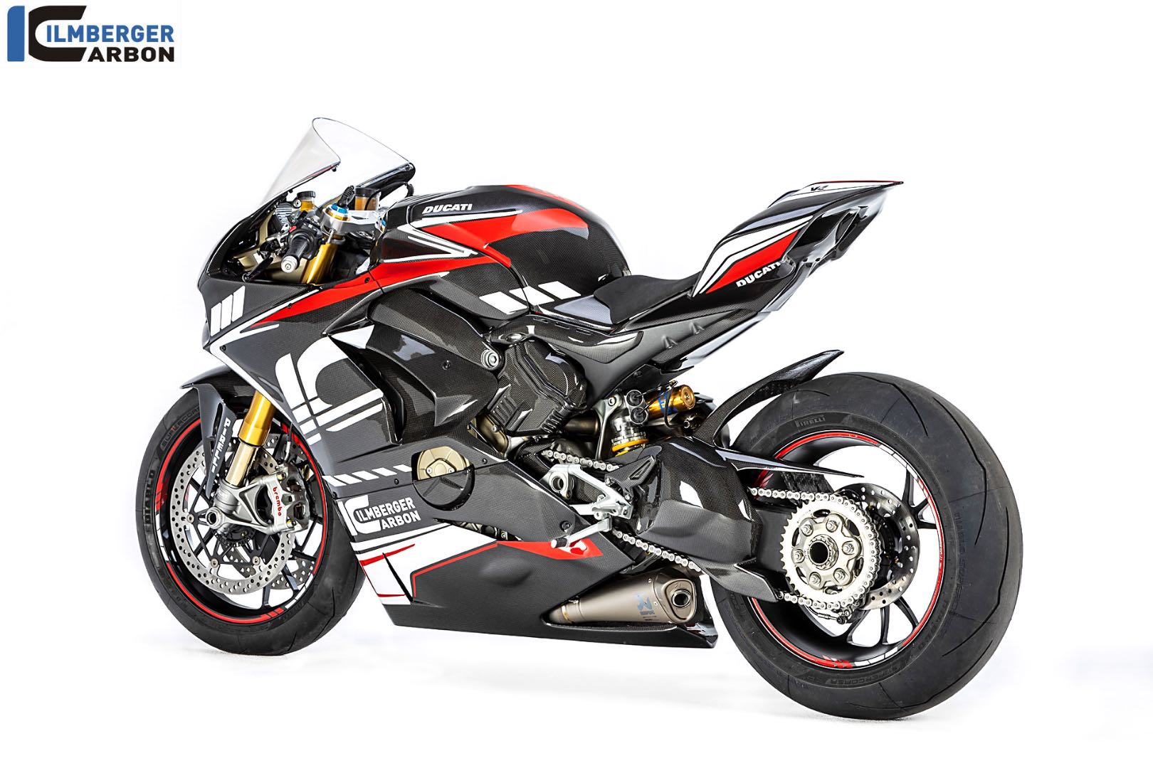 Tiga varian final Panigale V4 Carbon dibina dengan kerangka gentian karbon sepenuhnya, termasuk frem dan penutup enjin. Menariknya ialah kualiti perincian dan ketepatan pembuatan gentian karbon dihasilkan Ilmberger memang menakjubkan