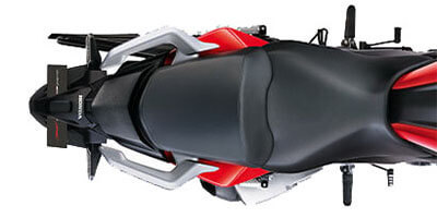 - Sistem suspensi menggunakan fork terbalik (USD) di depan dan monoshock di belakang.