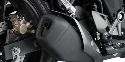 - Sistem brek jenis cakera tunggal 276mm dengan kaliper Nissin dwi-piston (depan) dan cakera tunggal 220mm dengan kaliper 1-piston (belakang).