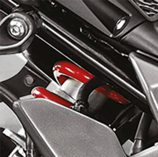 - Brek cakera tunggal 276mm (depan) dan 220mm (belakang) dengan sistem Brek Anti-Kunci (ABS) dwi-saluran.