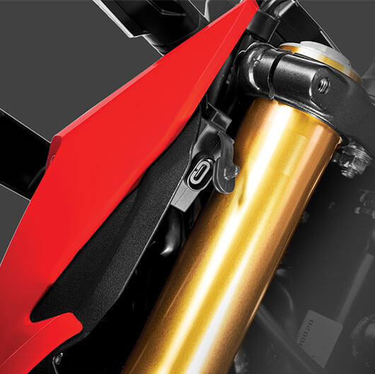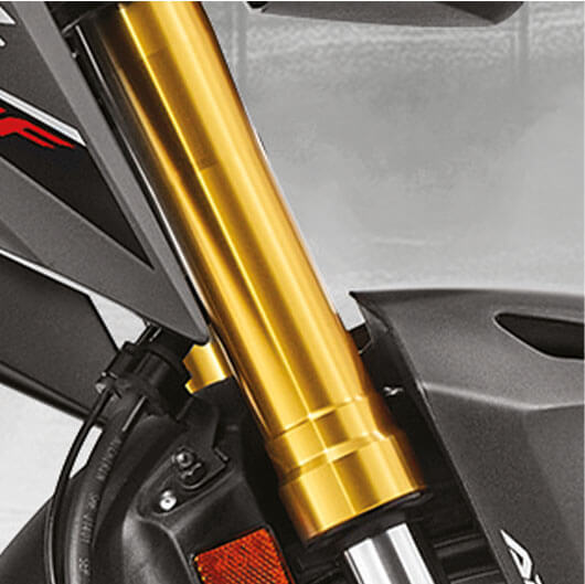 - Sistem suspensi fork terbalik (USD) dan monoshock boleh laras 5-tetapan prabeban.