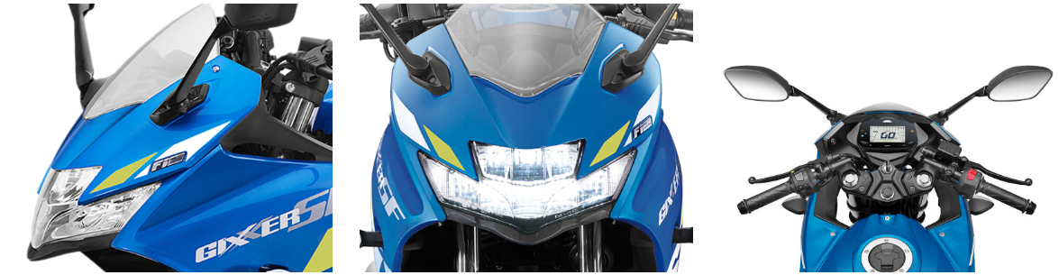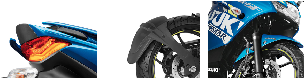 Seperti namanya, Gixxer SF MotoGP Edition ini tampil dengan seragam MotoGP dengan warna asas biru dan hitam, berserta dekal ‘SUZUKI’ yang melintang sepanjang fairing dan panel sisi. Ada juga dekal jenama bendalir Suzuki, ‘ECSTAR’, berserta strip putih dan kuning yang menghiasi bahagian panel kepala, fairing sisi dan ekor, termasuk sekeliling rim.