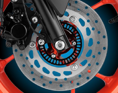 - Brek cakera 230mm dengan Sistem Brek Anri-Kunci (ABS) di depan dan brek dram di belakang.