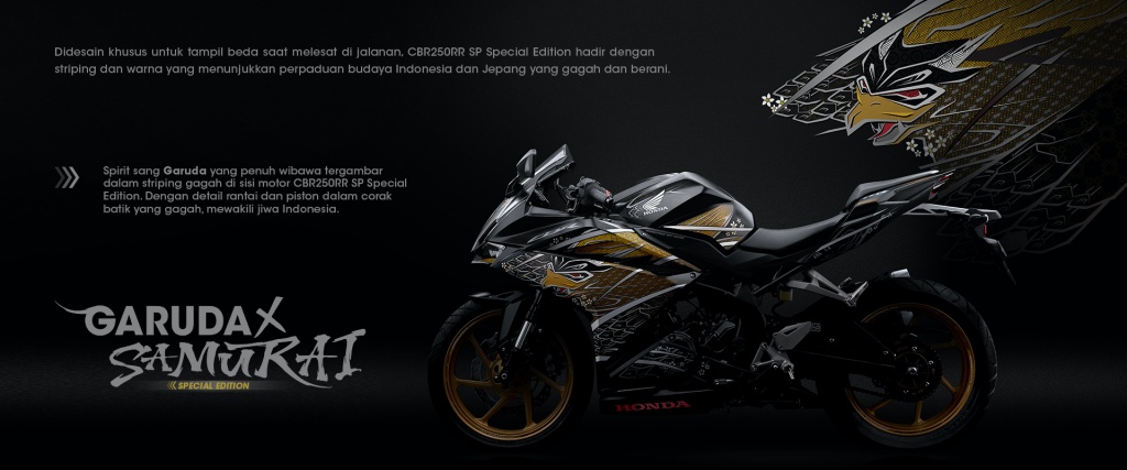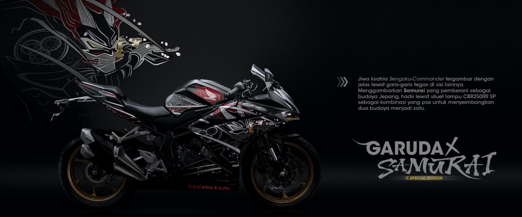 Pilihan grafik edisi istimewa, Garuda x Samurai hanya ditawarkan pada CBR250RR SP Quick Shifter sempena Hari Kemerdekaan Indonesia dengan rekaan corak dekal gabungan budaya Jepun dan Indonesia. Ia menampilkan lakaran pahlawan komander Sengoku yang diterjemahkan menerusi garis tegas di tepi, manakala grafik Garuda diterjemahkan menerusi perincian rantai dan piston dalam corak batik.