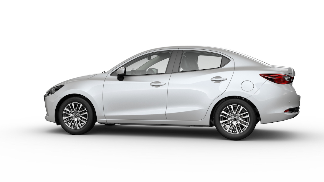 Selebihnya, gaya model sedan ini tidak jauh berbeza dengan varian hatchback dengan rekaan lampu depan tirus, dan gril ikonik yang mengekalkan falsafah rekabentuk KODO dengan rim 16 inci.