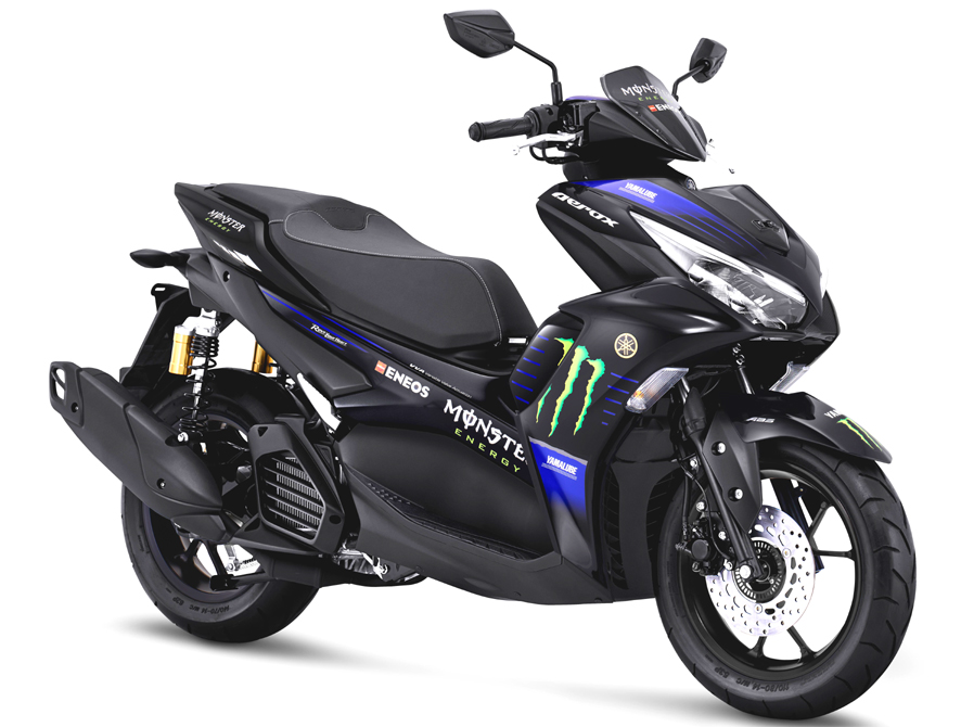 PT YAMAHA Indonesia Motor memperkenalkan Aerox 155 Connected/ABS MotoGP Edition yang dipadankan seragam pasukan Monster Energy Yamaha dan dijual pada harga Rp29,500,000 (RM8,4780).