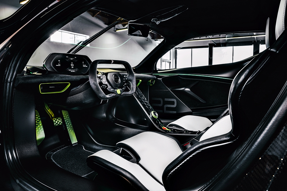 Ruang kabin didominasi putih dan hitam. Kerusi dibalut kulit putih dan hitam, manakala bumbung dan stereng dibalut Alcantara hitam.