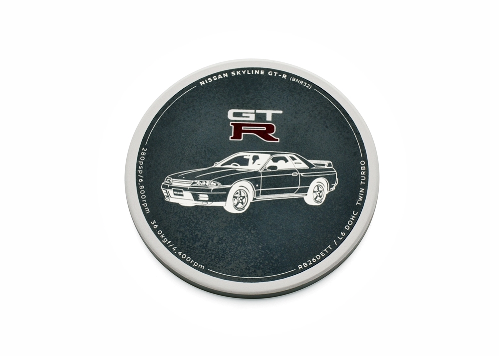 - Alas cawan dengan gambar Skyline GT-R yang dilukis pereka dalaman Jabatan Rekabentuk Nissan.