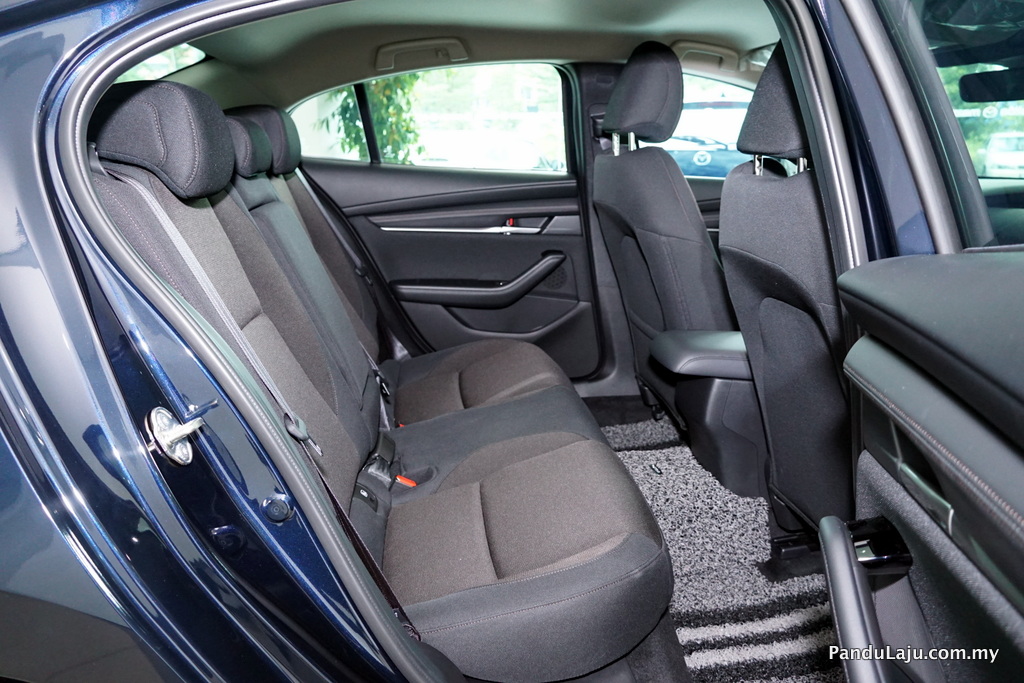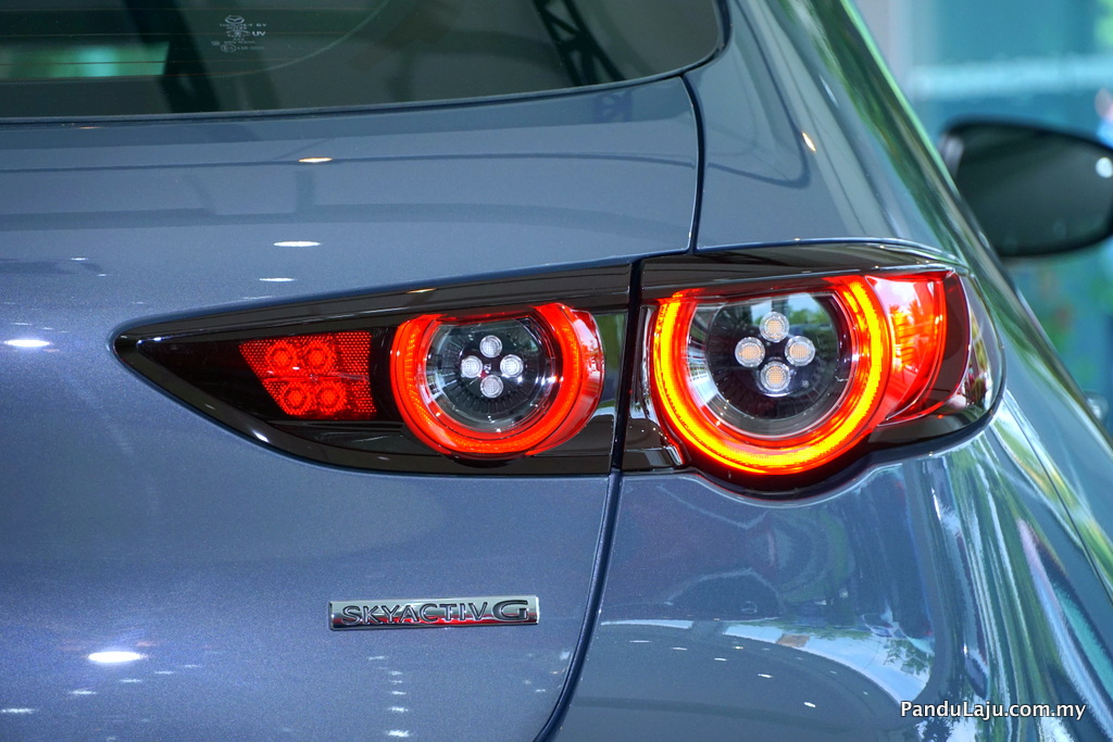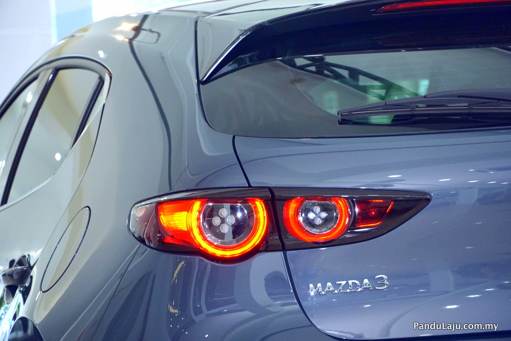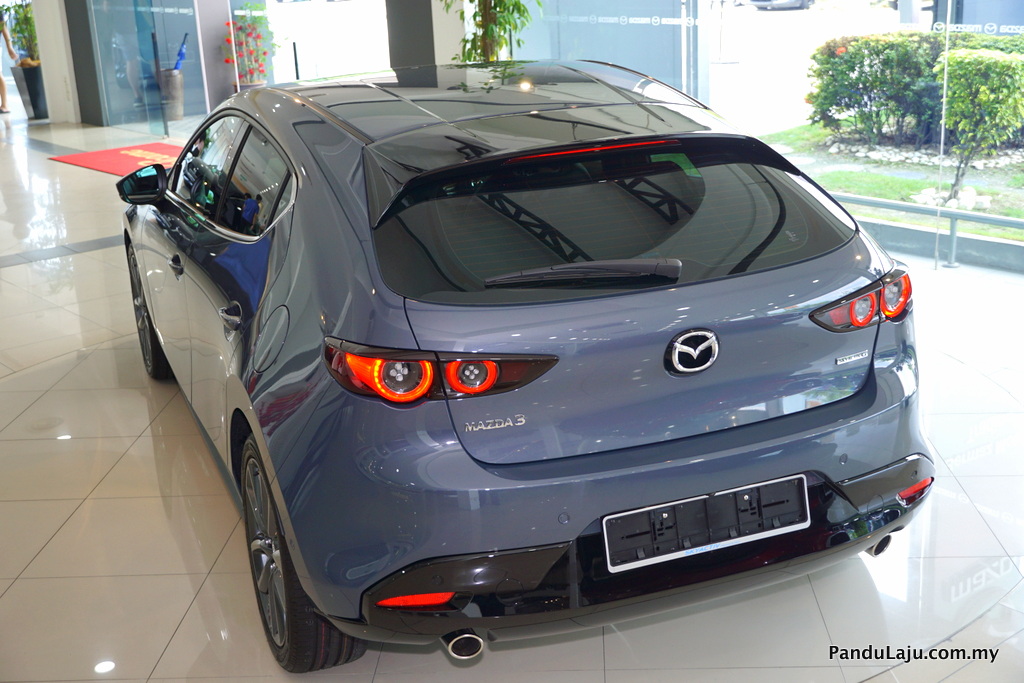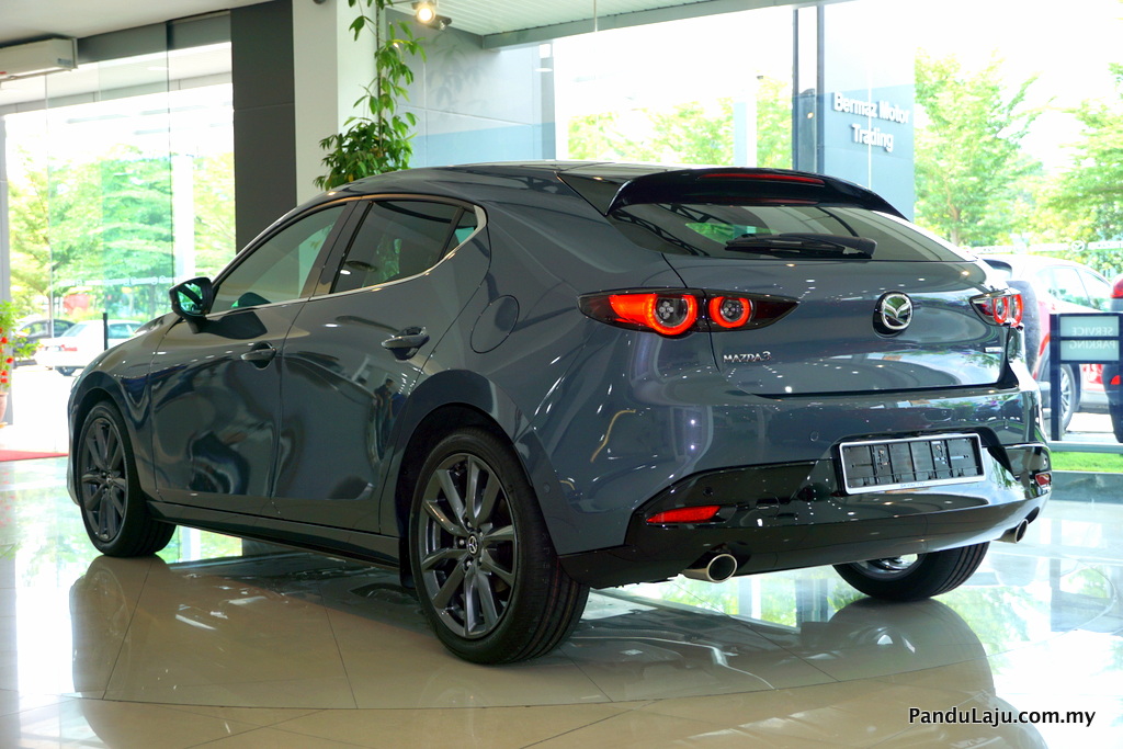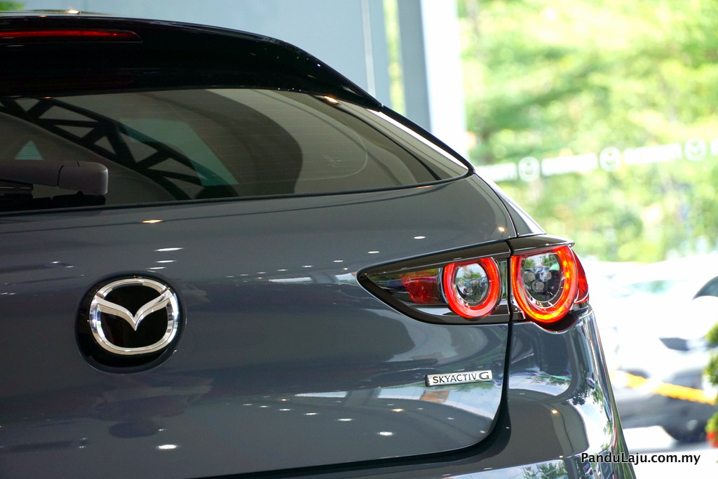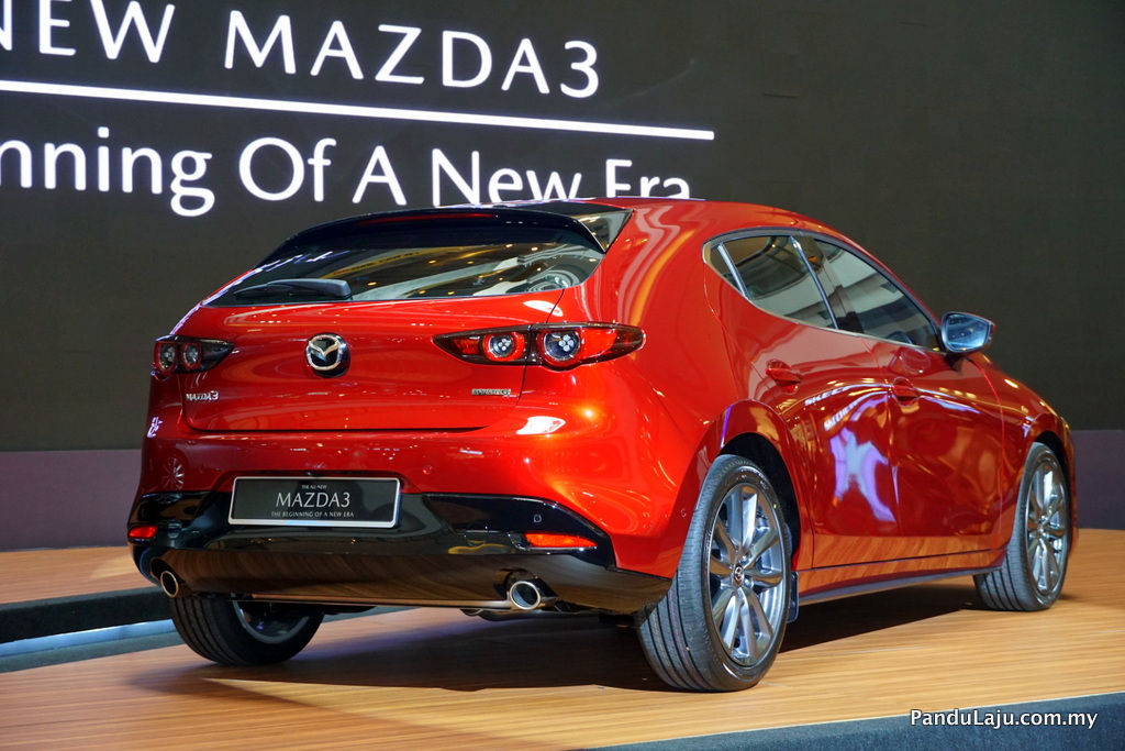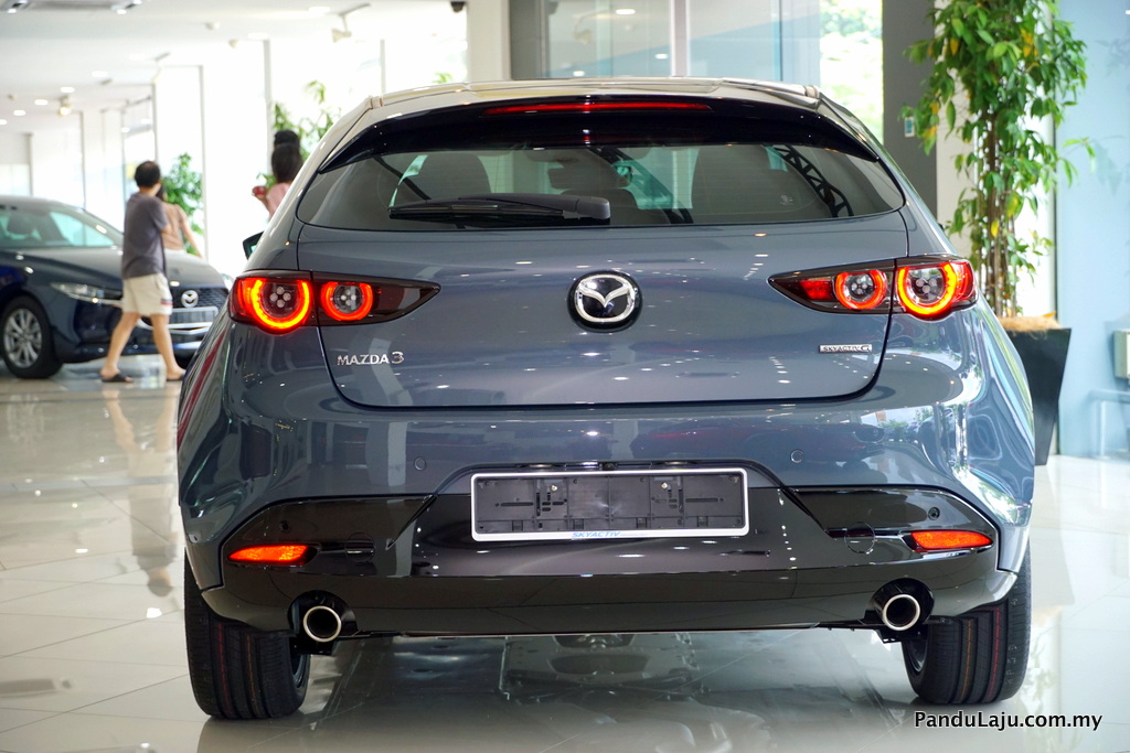 Bawah bampar belakang kelihatan ekzos kembar dan perkataan Mazda3 dengan fon baharu berbanding versi lama. Melengkapkan penampilan seksi berkenaan Mazda menawarkan rim 18-inci hanya pada varian High Plus dan 16-inci untuk varian yang lain.