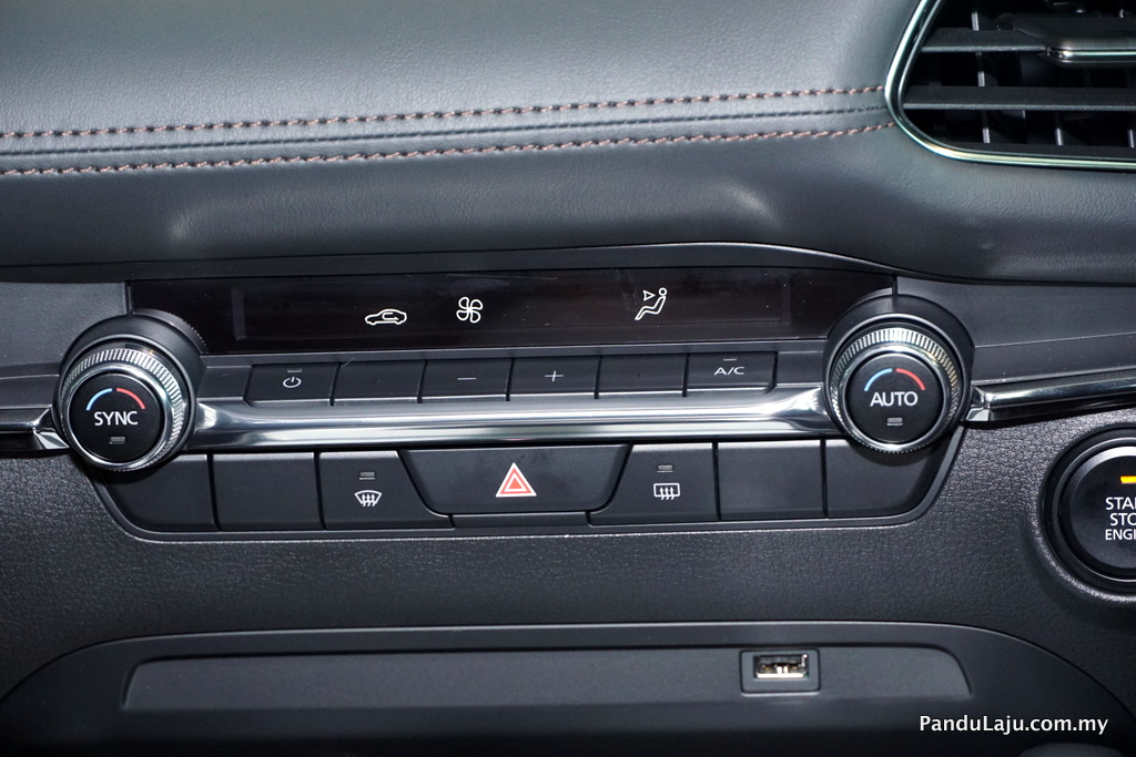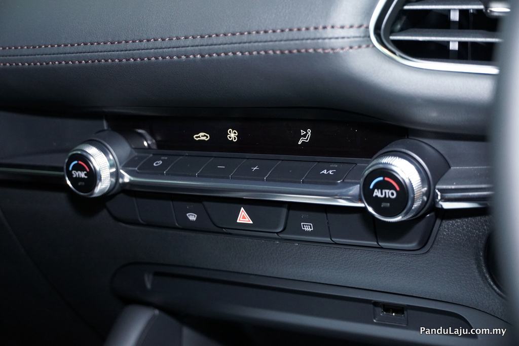 Ciri peralatan standard lain yang ditawarkan termasuk Sistem Hiburan MZD Connect bersama perintah suara, fungsi Apple Car Play dan Android Auto, paparan skrin hiburan warna penuh 8-inci, sambungan bluetooth, 8-pembesar suara, Kawalan Commander Multi-fungsi, 2-port USB dan paparan kamera undur serta Teknologi Mazda i-Stop Idling dan Teknologi Kawalan G-Vectoring Plus Mazda.